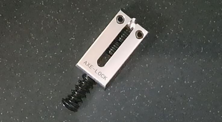 Insert the AXE-LOCK holding plate system in the bridge block. Where the inserts are too tight, they may need to be installed one at a time for best results.