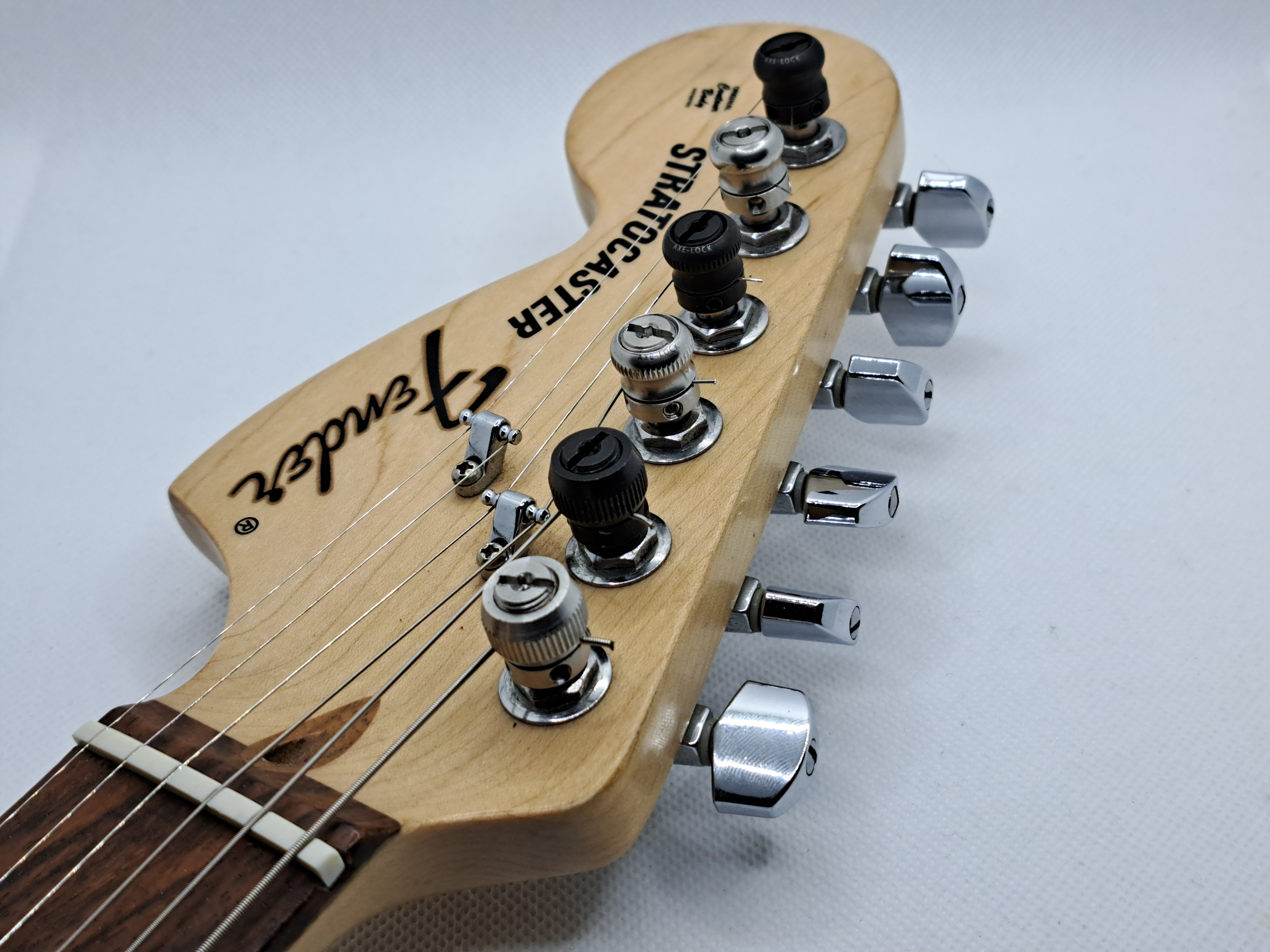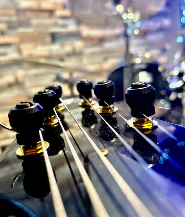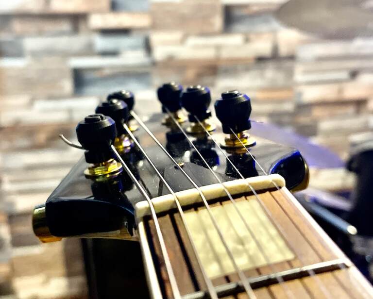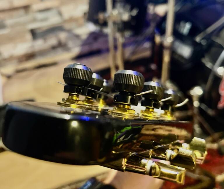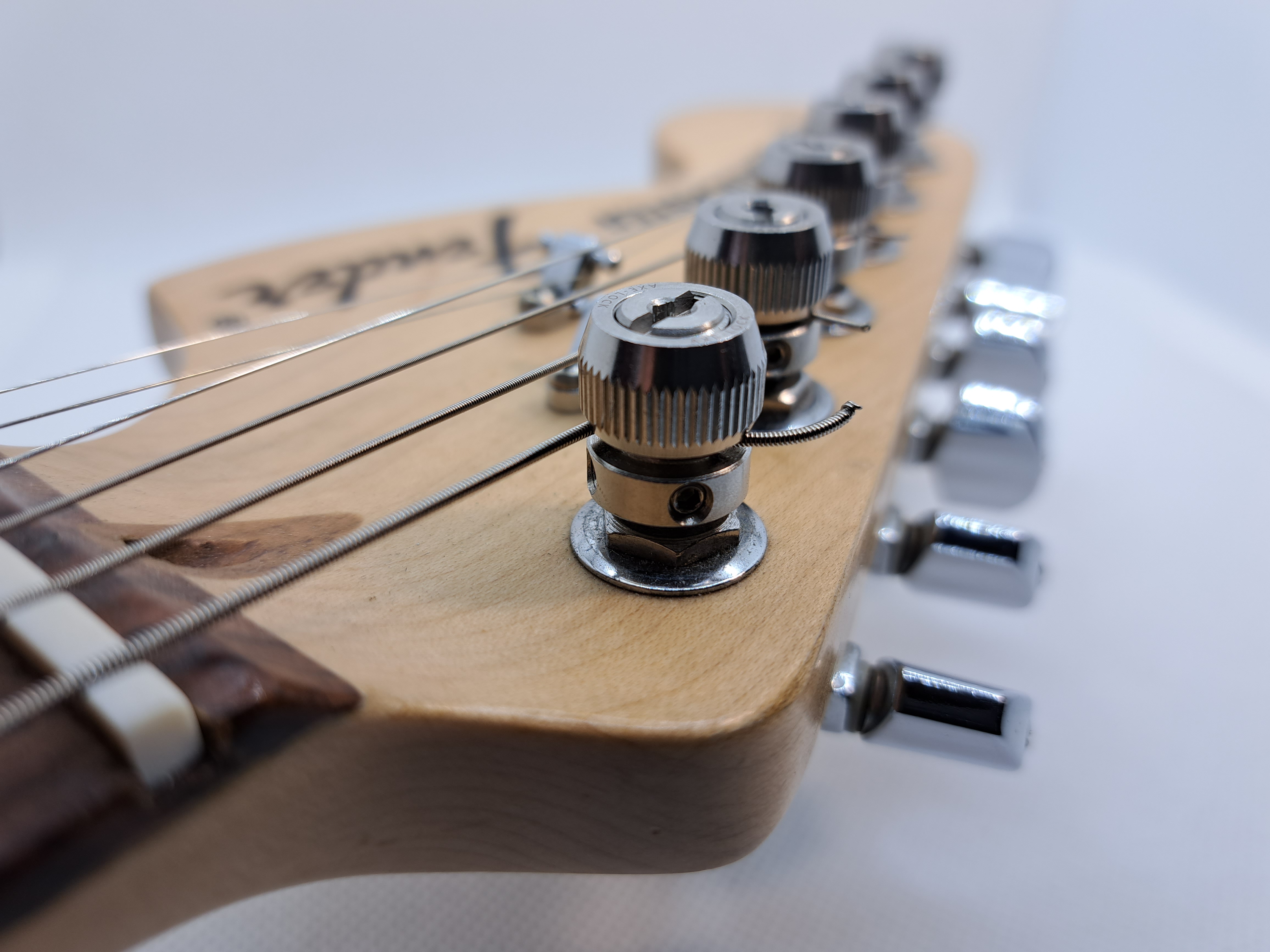 Tip: The empty grub screw holes can be used to slide the strings through the tuning post.