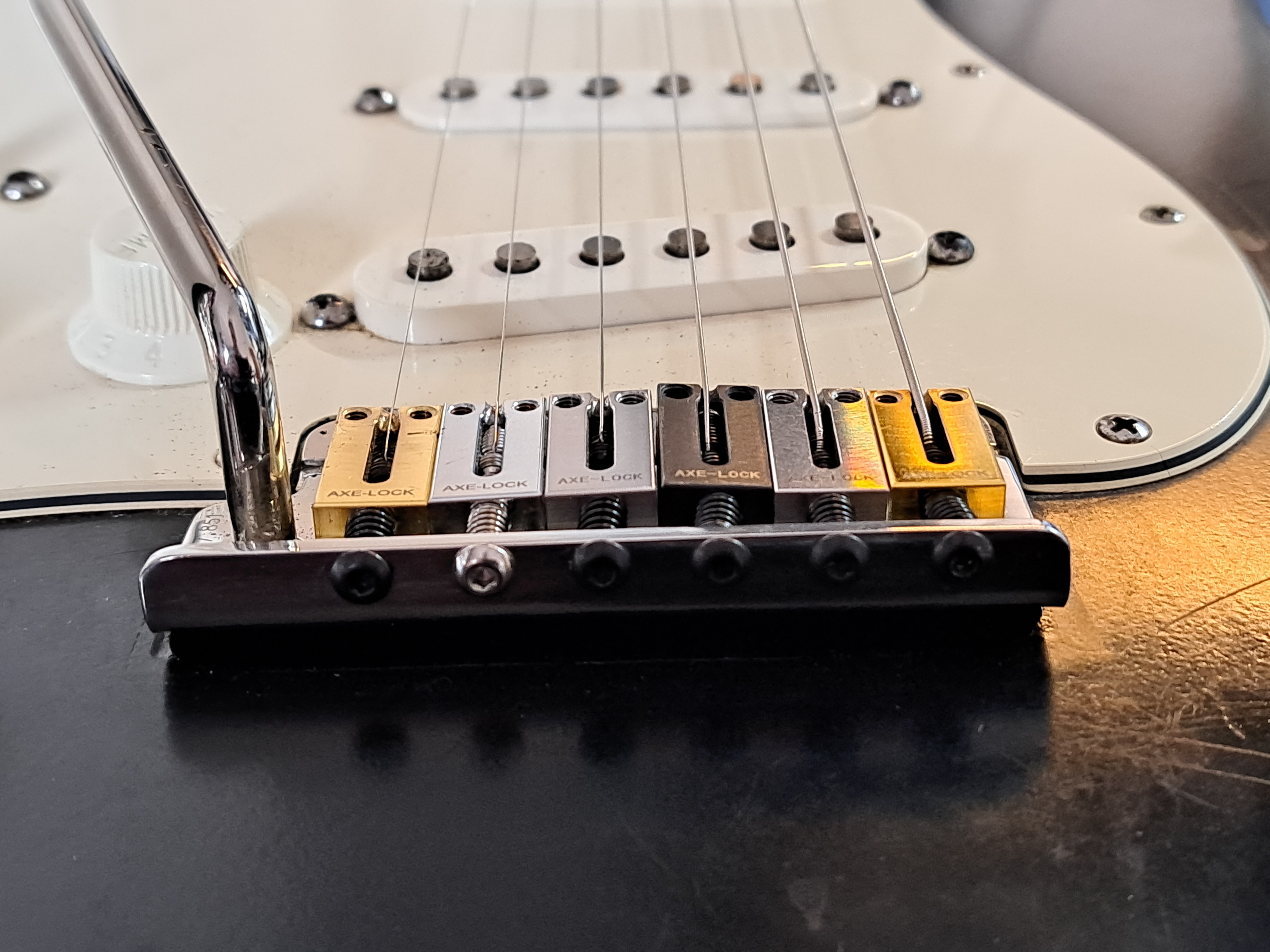 "No guitar modifications required - Existing Bridge and Tuners remain in place!!!"