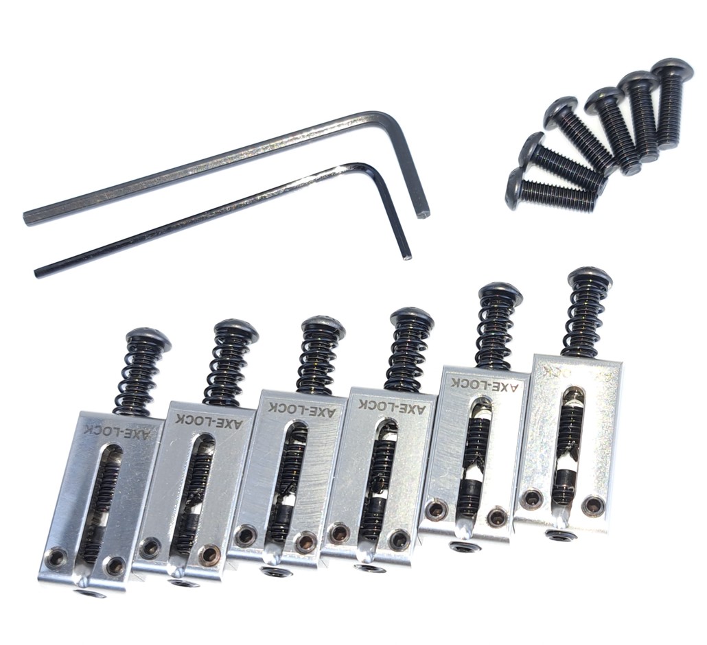 Set of 6 Bridge Locking Saddles fitted with springs, intonation and locking screws