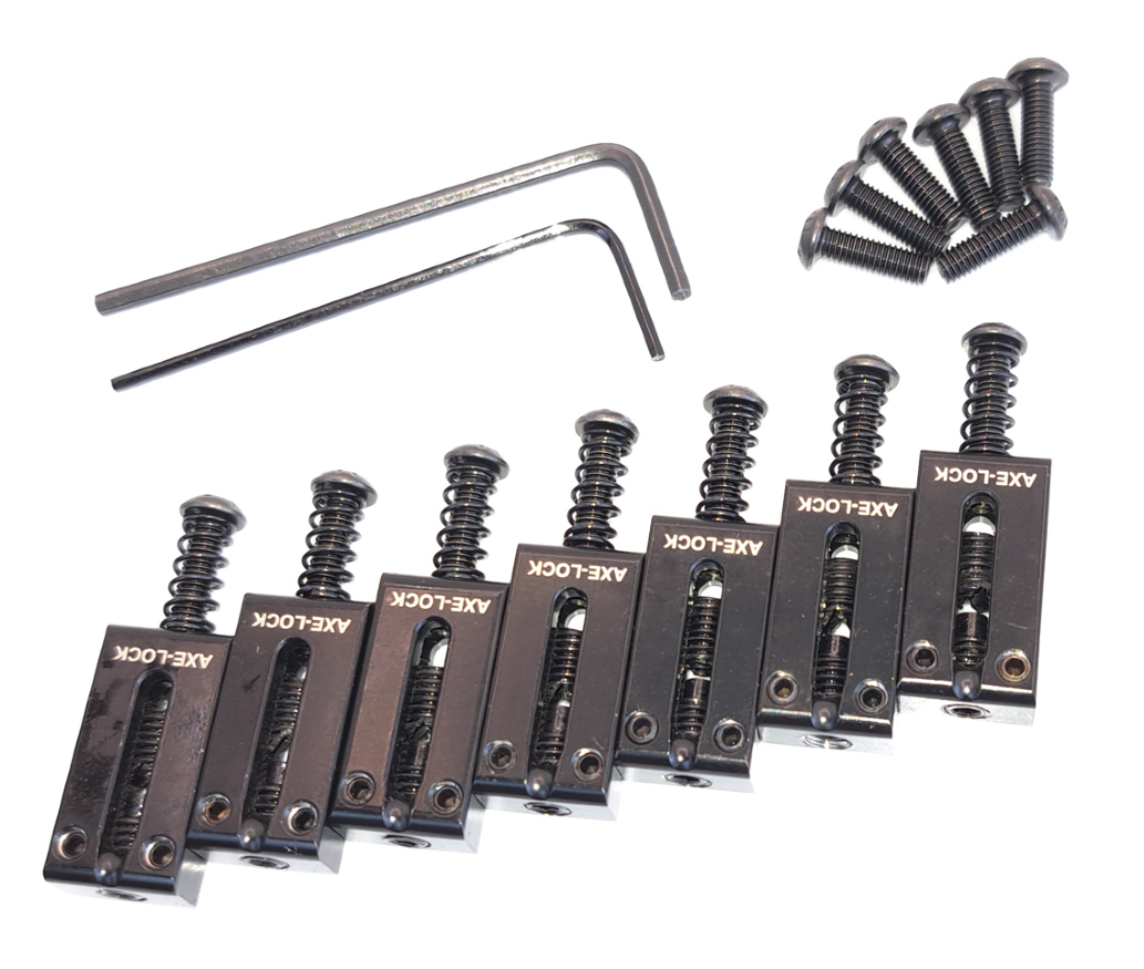 Set of 6 Bridge Locking Saddles fitted with springs, intonation and locking screws