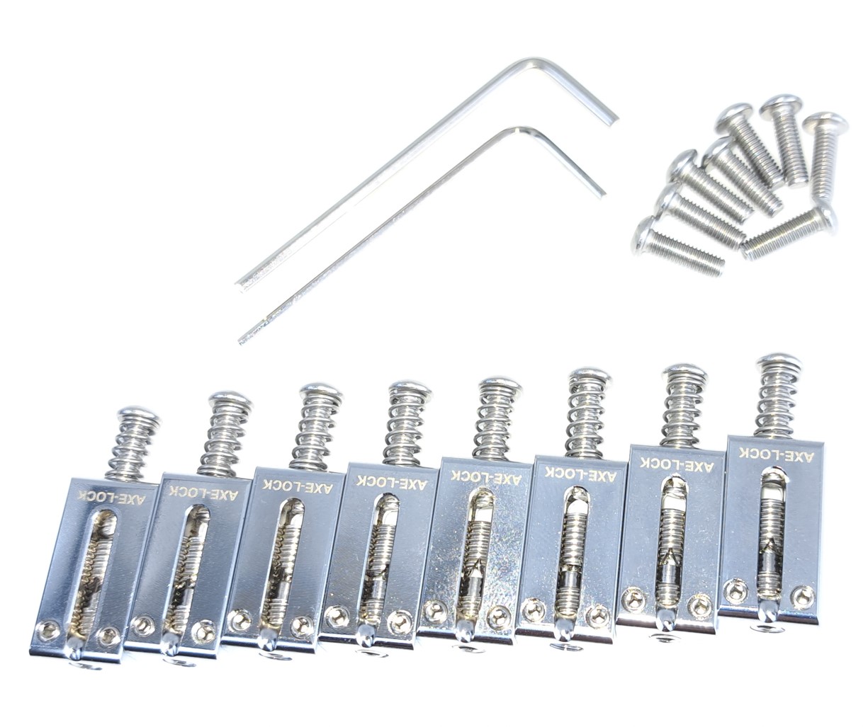 Set of 6 Bridge Locking Saddles fitted with springs, intonation and locking screws